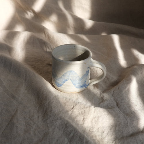 Henry Anderson-Brown - Morning Coffee Mug In White With Blue Wiggle