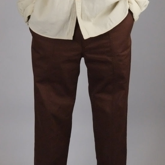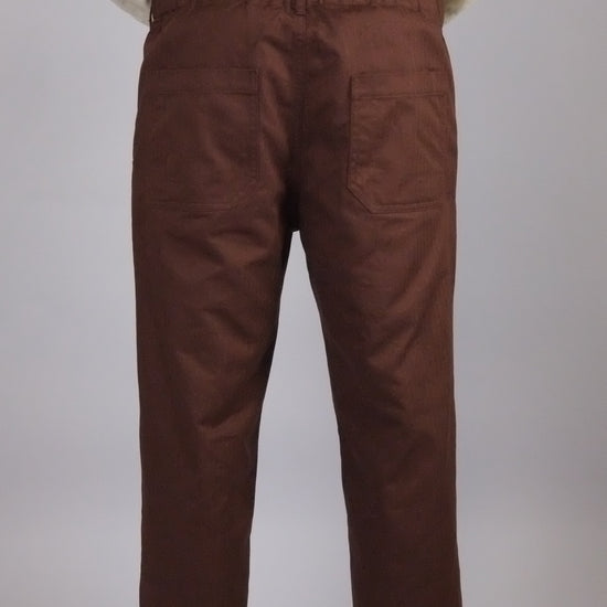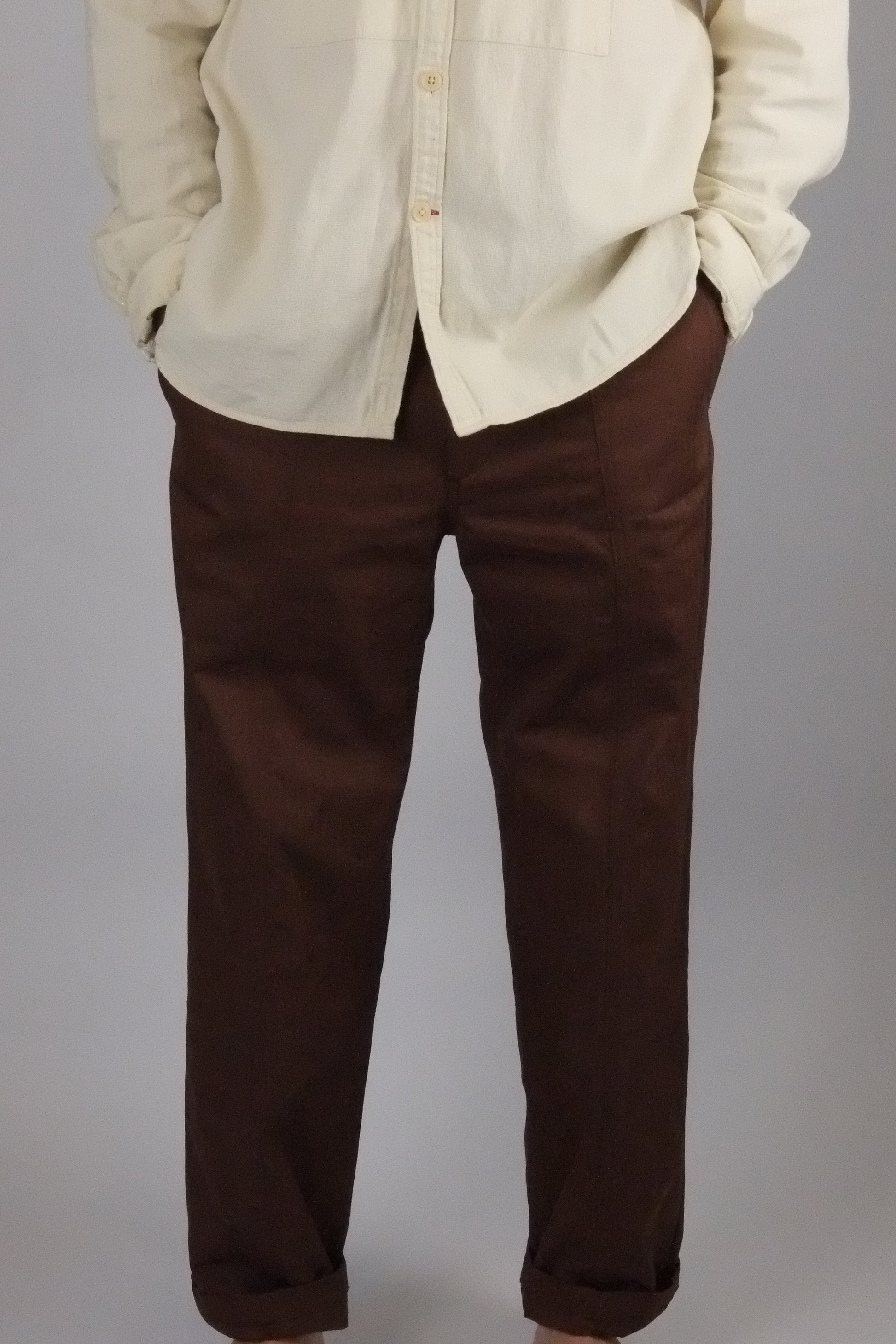 Refined, versatile, and built to last these men’s slacks are cut from a rich chocolate brown textured twill that combines comfort with structure. Designed with a classic zip and button closure, they deliver an effortless balance of sophistication and everyday wearability.
