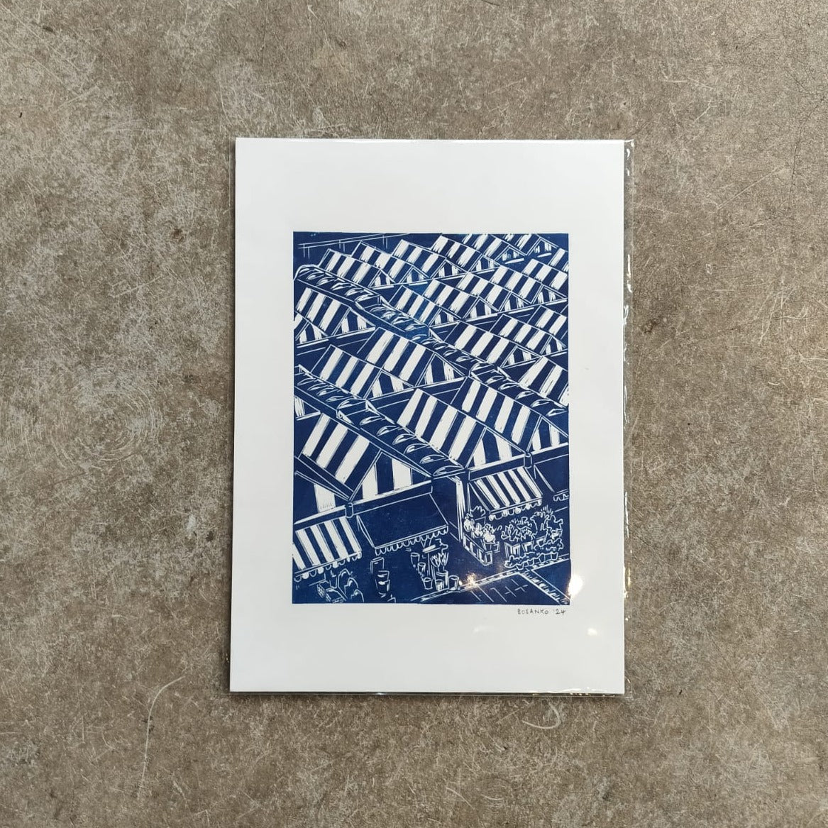 A lovely lino print of Norwich market in a beautiful deep blue.