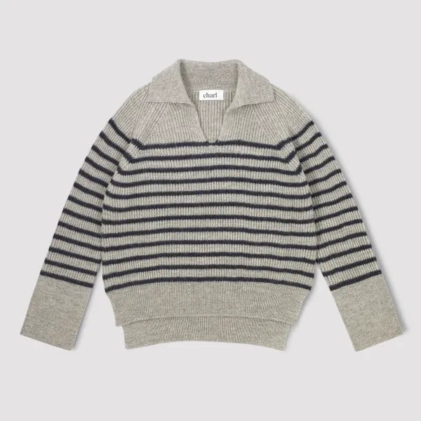 Charl Knits - Edie Jumper in Oatmeal And Navy