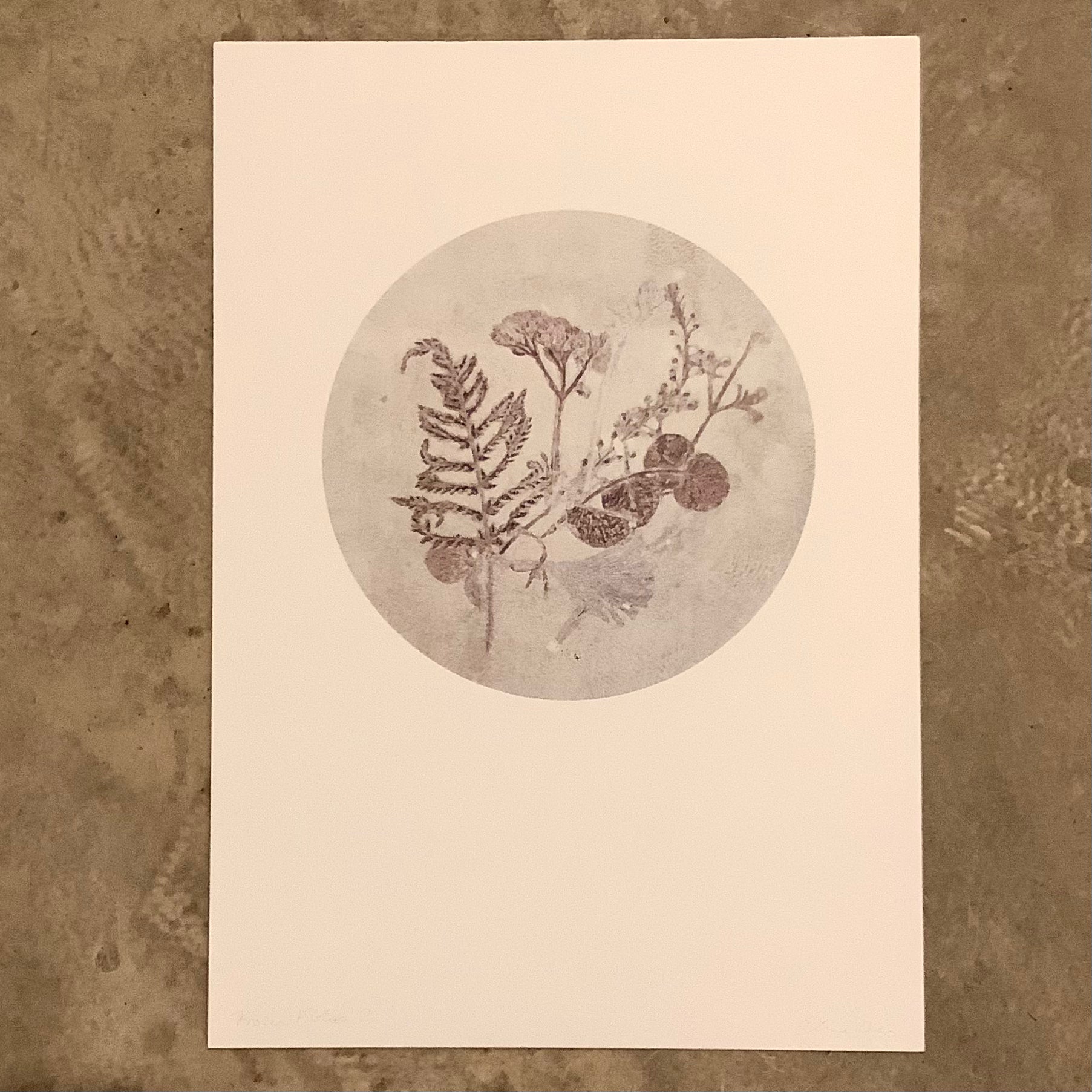 A limited edition unframed print of one of Claire’s mono prints ‘Frozen Florals’.
