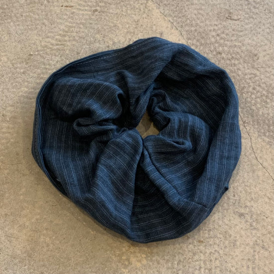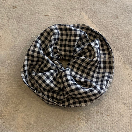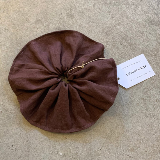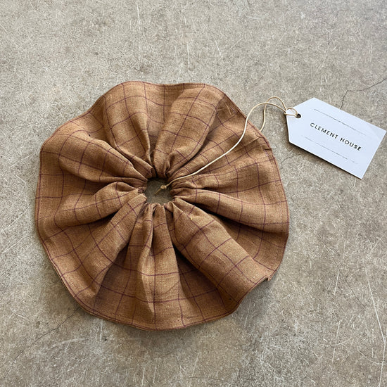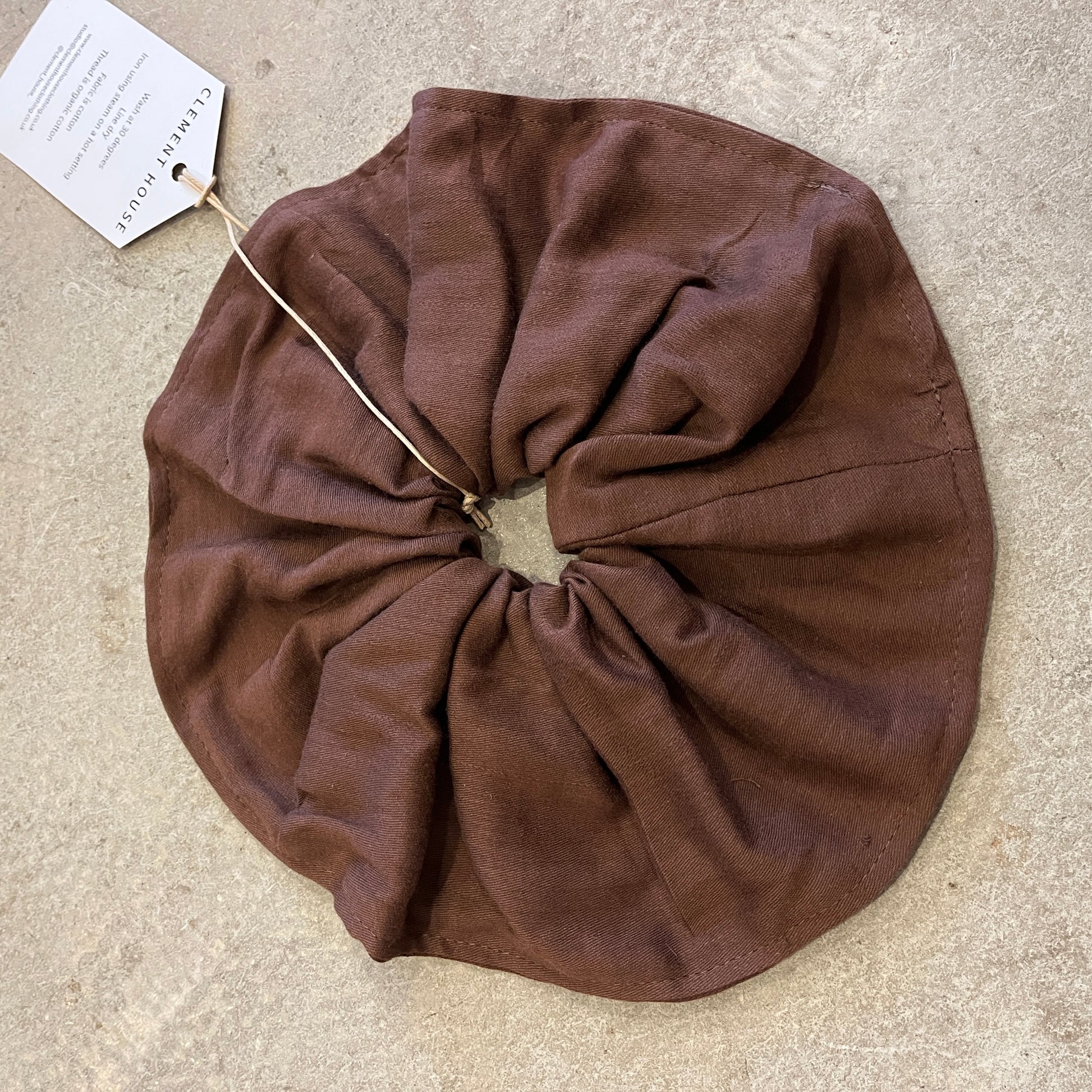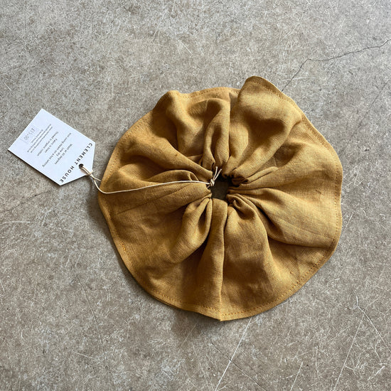A beautiful, statement scrunchie made to elevate every outfit in a variety of fabrics which are offcuts from garment production. Made from linen and deadstock (polyester) taffeta, organic cotton thread, organic elastic (60% organic cotton, 40% natural rubber).