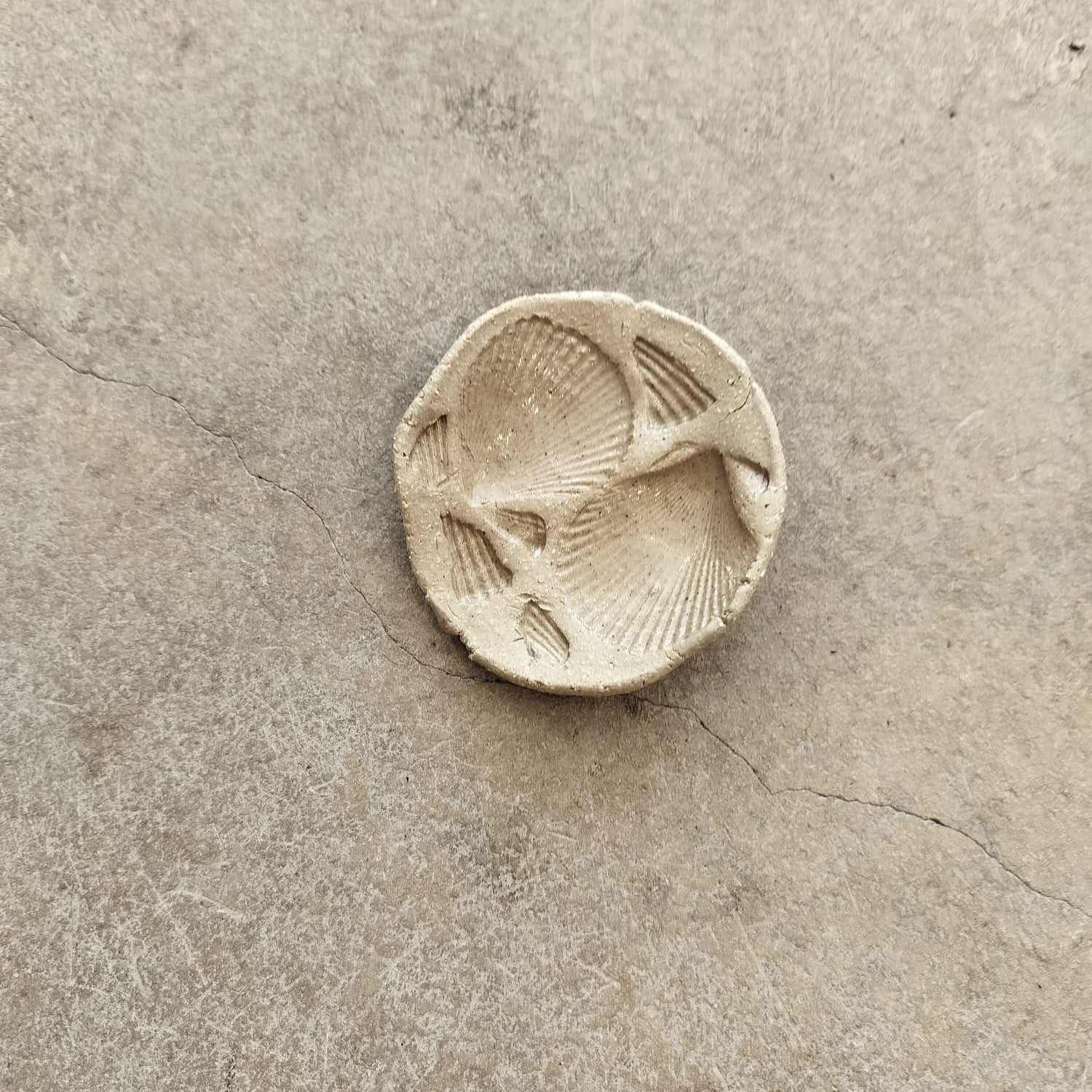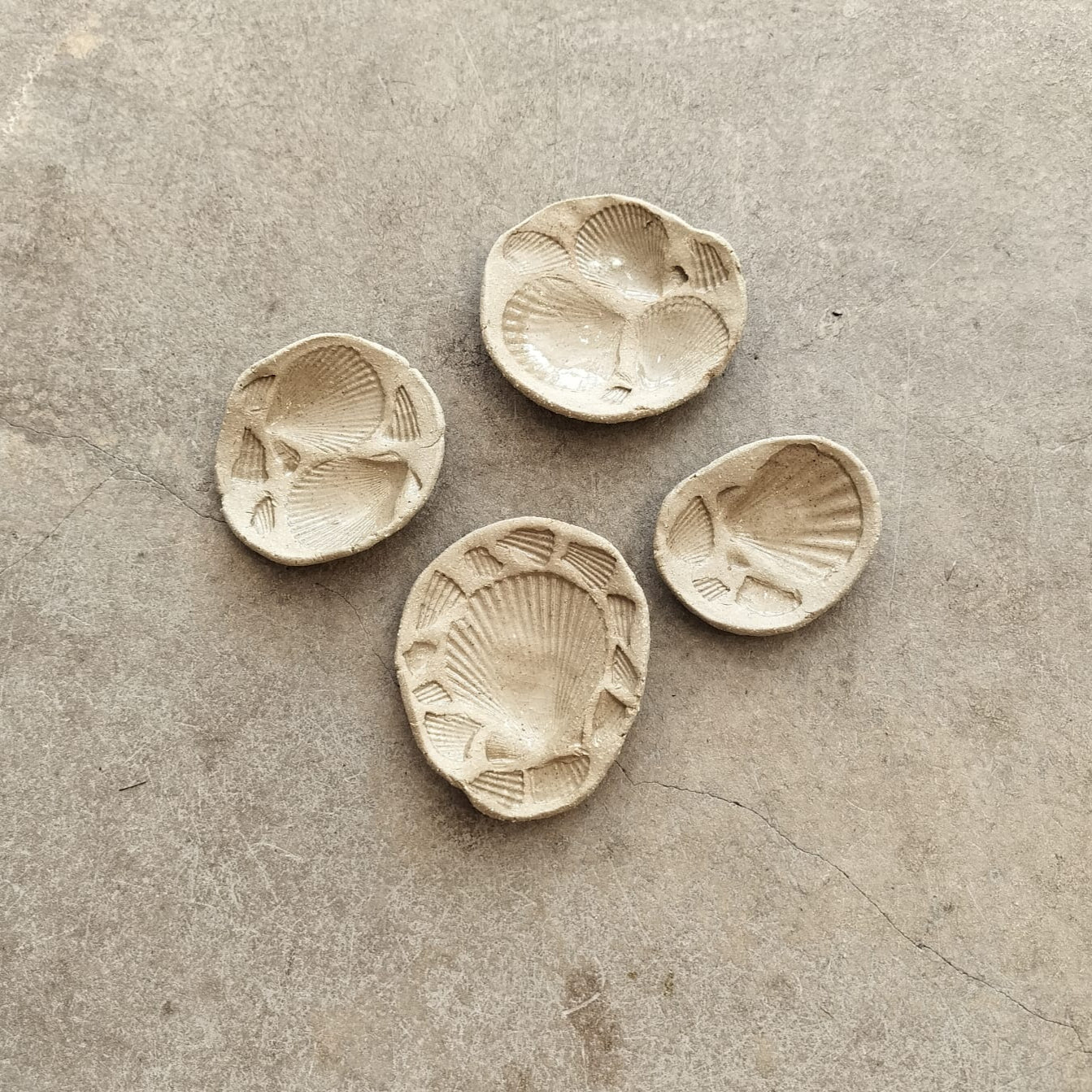 A selection of trinket dishes made in a natural stoneware clay which has been imprinted with seashells of the north Norfolk coast. Perfect for jewels and small treasures.