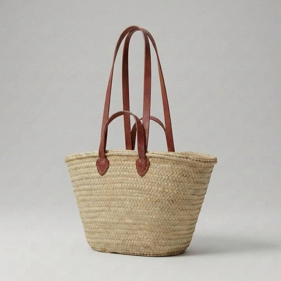 Bring effortless French style to your everyday with this classic French market basket. Handwoven from durable natural straw and finished with strong double leather handles, this versatile tote bag is designed for both style and function.