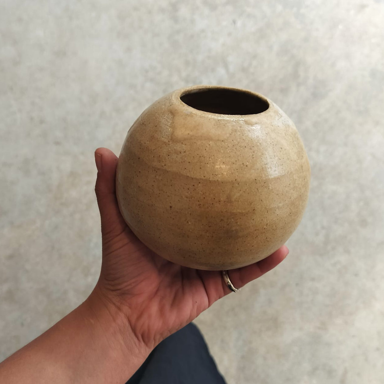 Gorgeous hand thrown bulb shaped vase.Approx. 9cm height x 11cm width