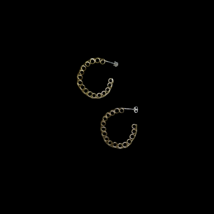 Small spiraled hoops made from one pices of wire, spiraled around multiple times and turned into a simple hoop which is a slight statement within itself. Due to the handmade nature and organic nature of these earrings, no pair will be identical.