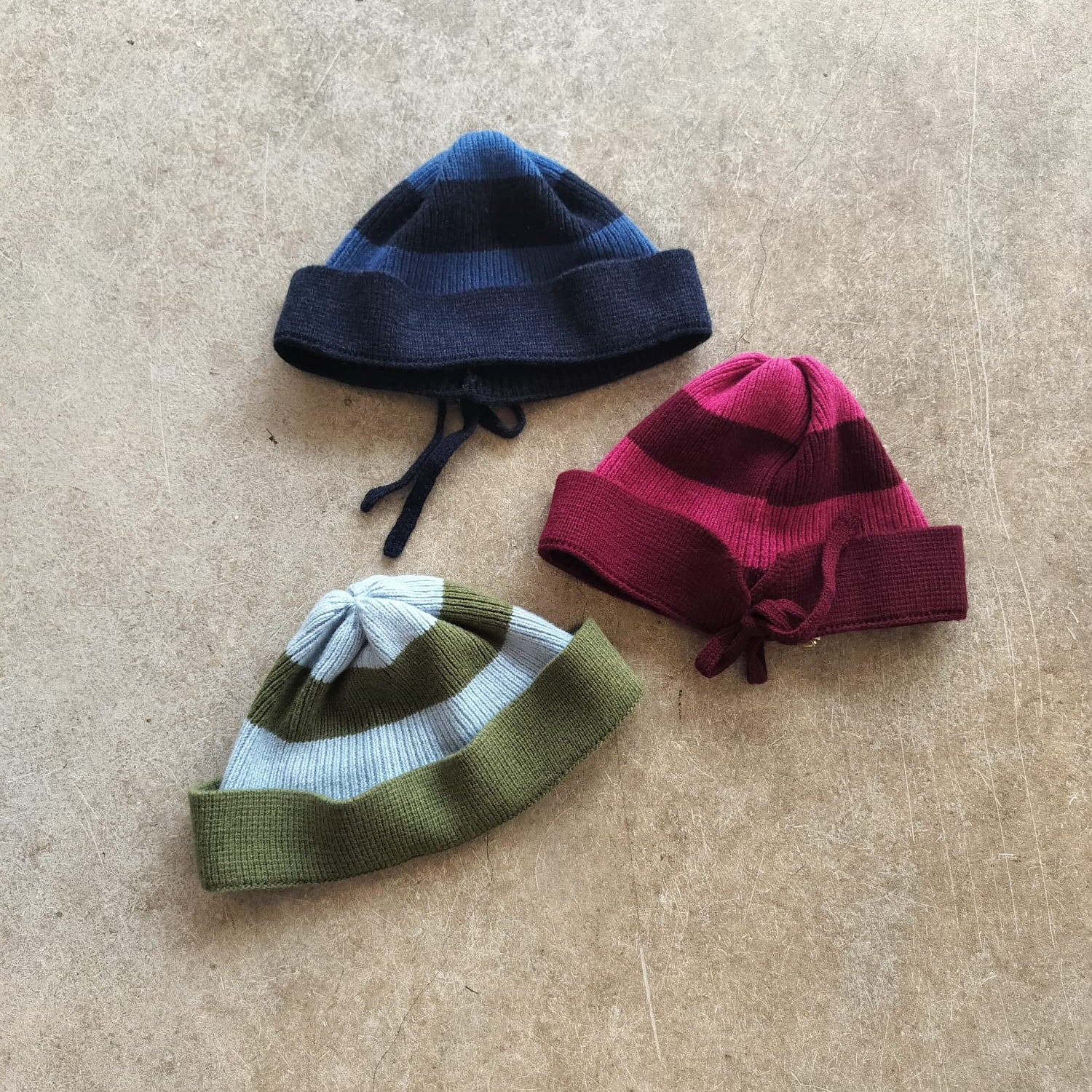 The sailor hat is an adorable little addition to any wardrobe this autumn winter. A beanie style hat with a sweet little brim and a tie at the back.