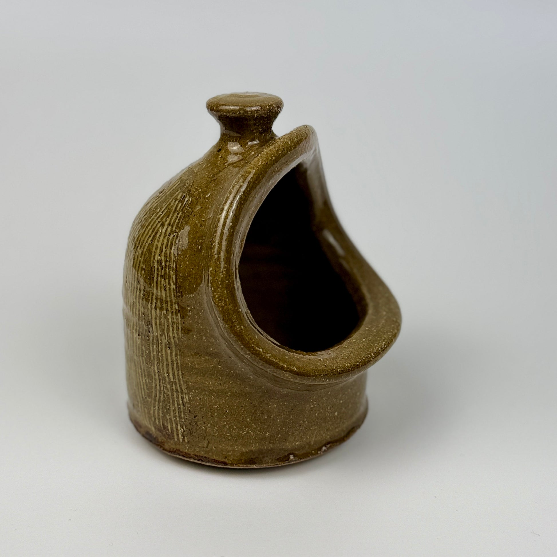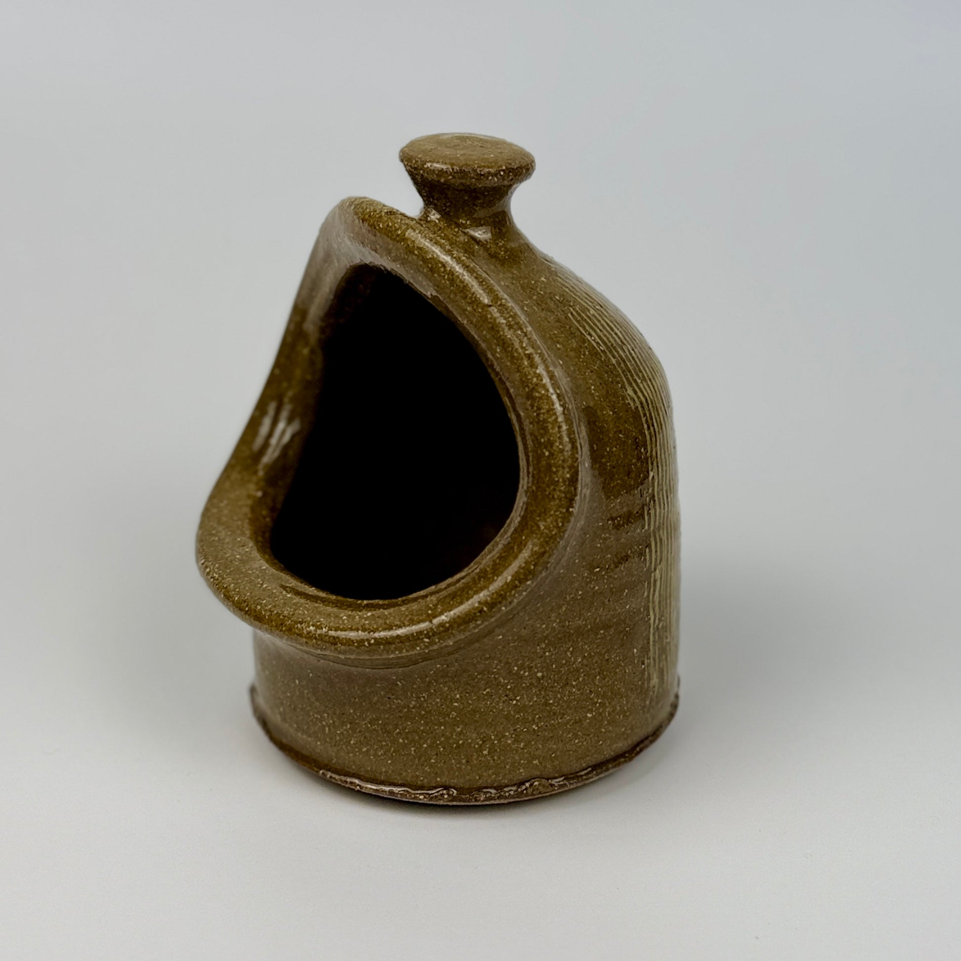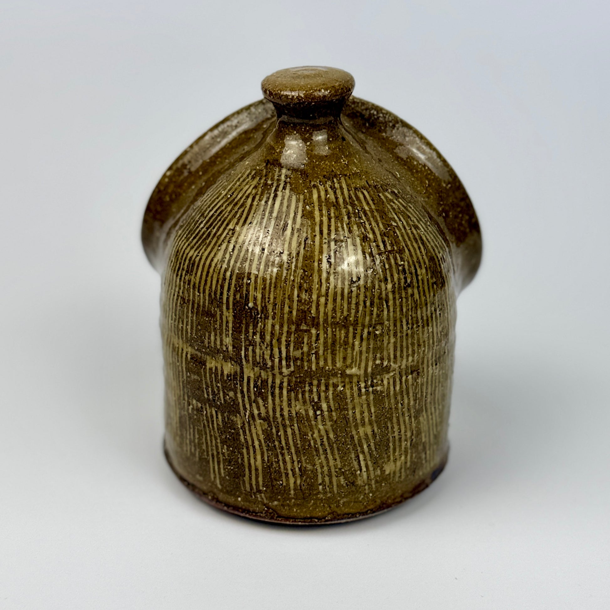 Add handcrafted charm to your kitchen with this handmade stoneware salt pig, expertly thrown from buff stoneware clay and finished with a rich nicotine ash glaze. The surface features sgraffito stripes inlaid with white slip, creating a subtle yet striking contrast that highlights the texture of the clay and the maker’s hand.