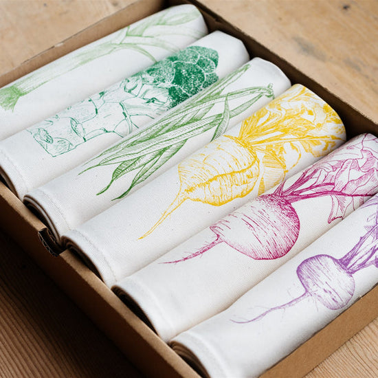 This beautiful set of vegetable themed napkins is ideal for the allotment lovers or gardening enthusiasts.