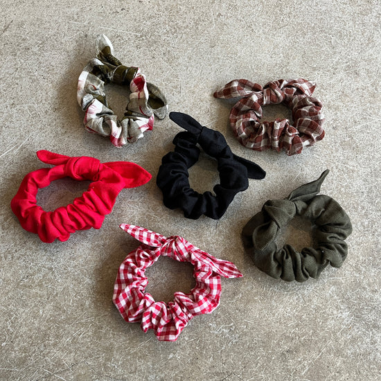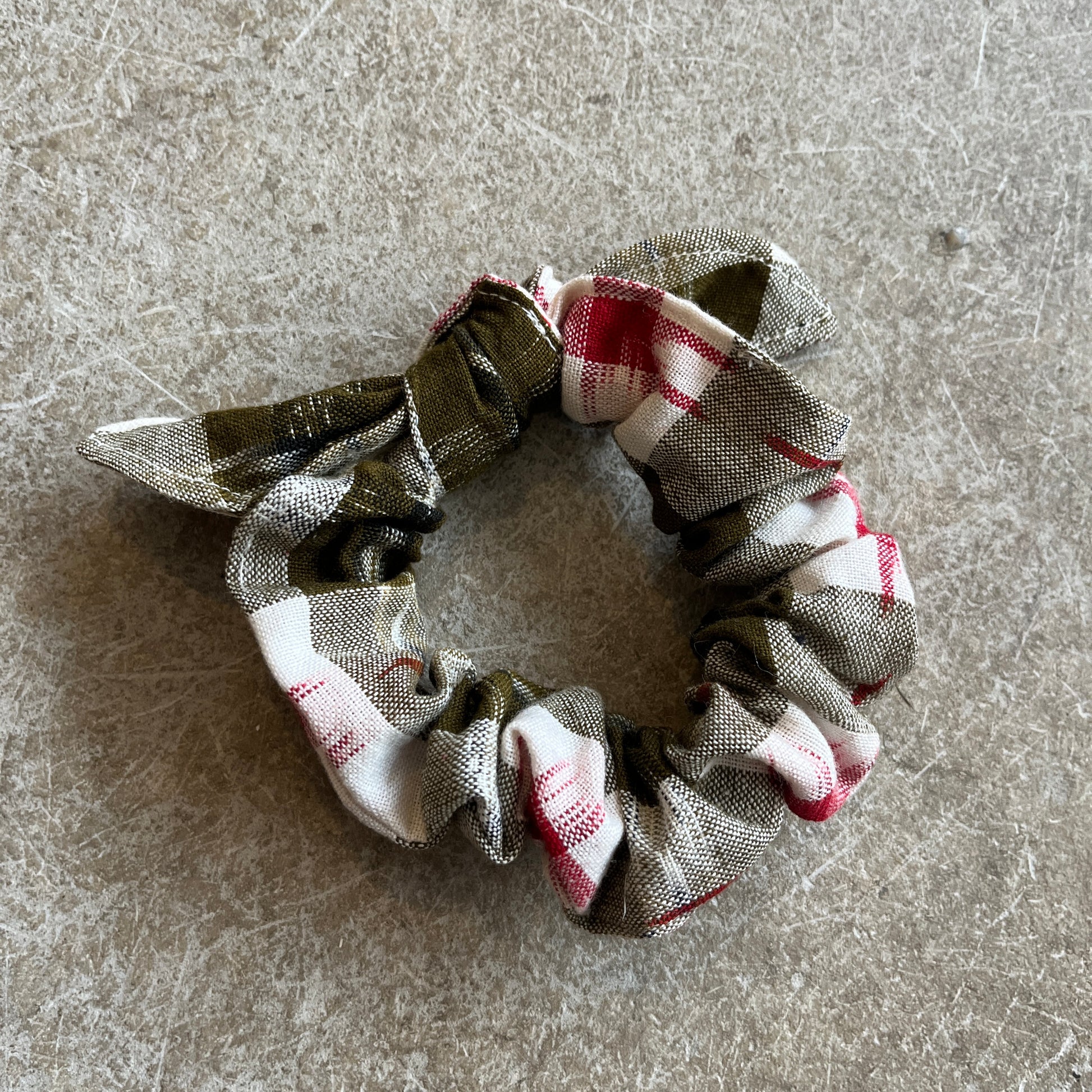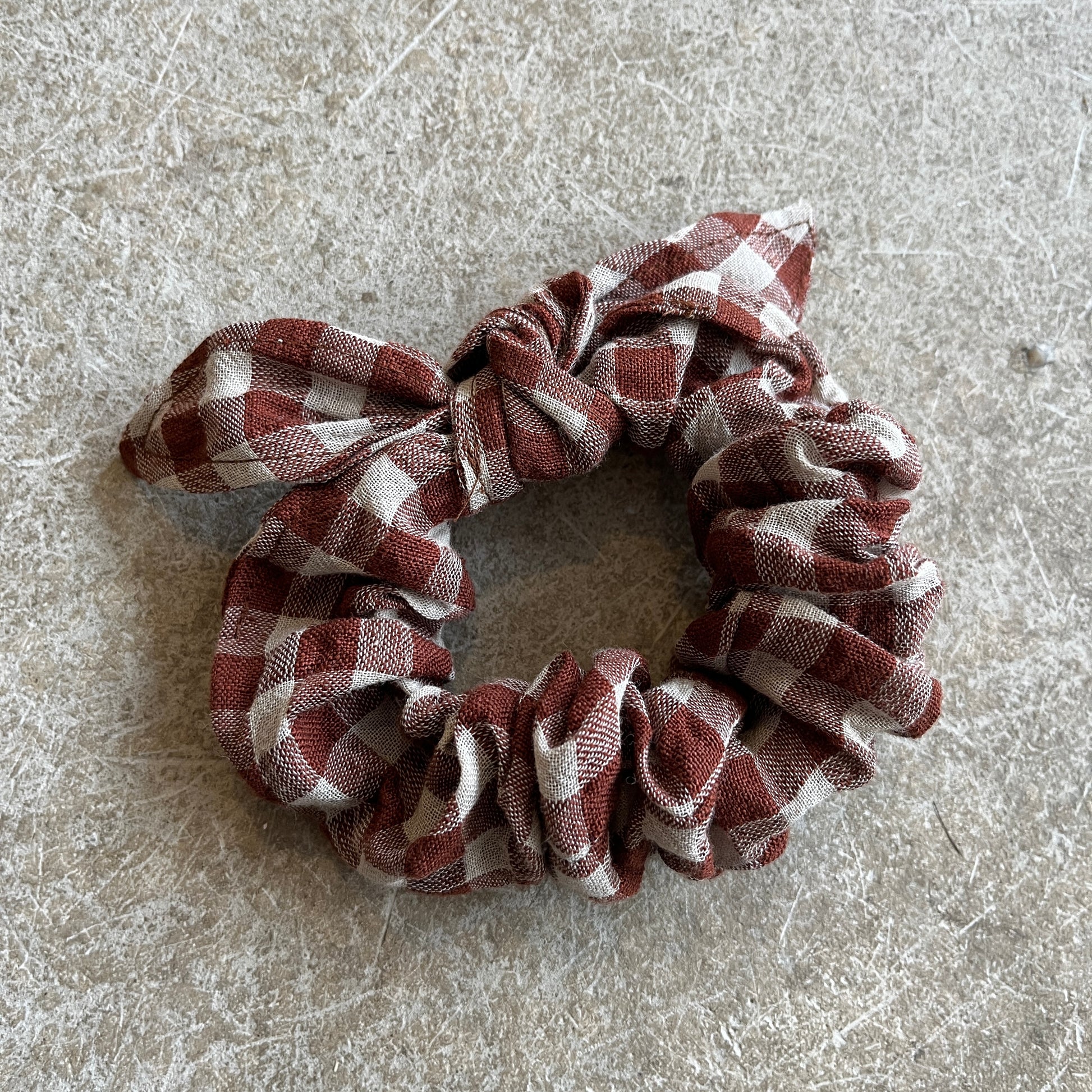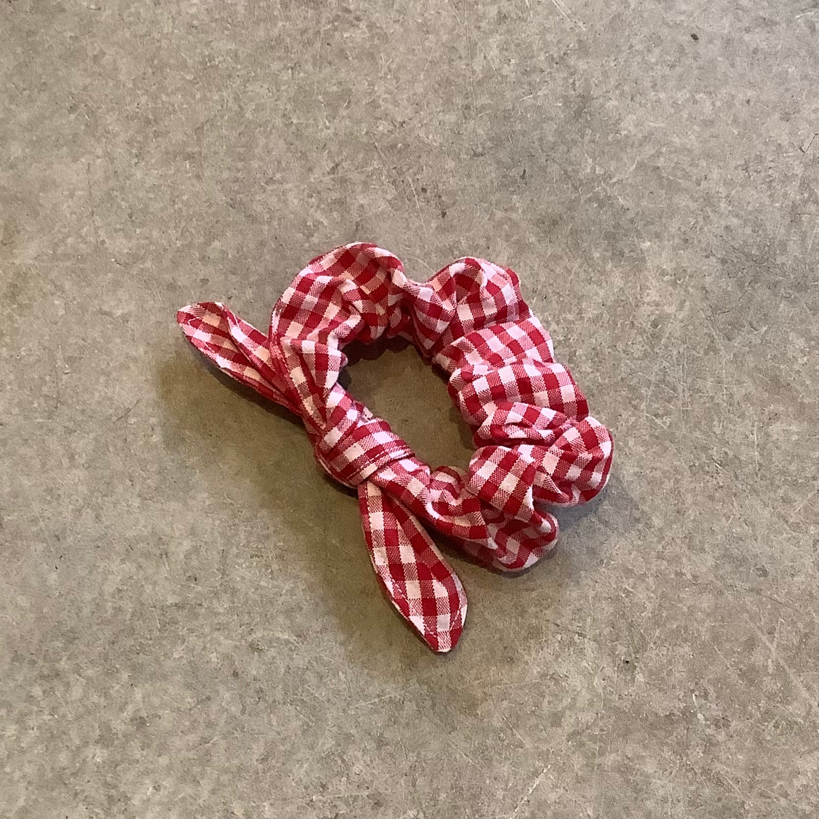 - 100% cotton red and white gingham hair scrunchie with bow detail.