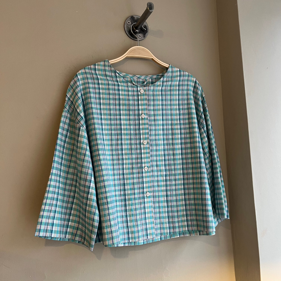 Mint Check brings a fresh, uplifting feel to this simple silhouette. The soft green tones offer gentle colour while remaining easy to style with neutrals, denim, and earthy shades. Clean and quietly playful, it adds lightness to everyday dressing without overpowering an outfit.