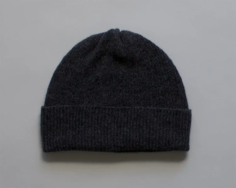 Knitted in 1x1 rib lambswool, this creates a versatile stretchy hat which will fit most head sizes and can be worn as a short style by turning the hem twice or just once for a standard size.