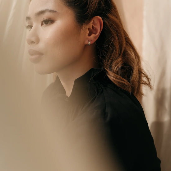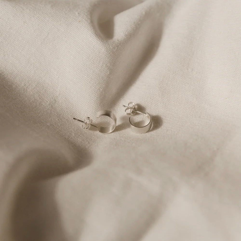 A pair of minimal, everyday huggy hoop studs handcrafted in recycled Sterling Silver. These little beauties sit perfectly around your lobe and are available in either a matte or polished finish. Measuring 0.8cm in diameter you'll be wearing these all the time.