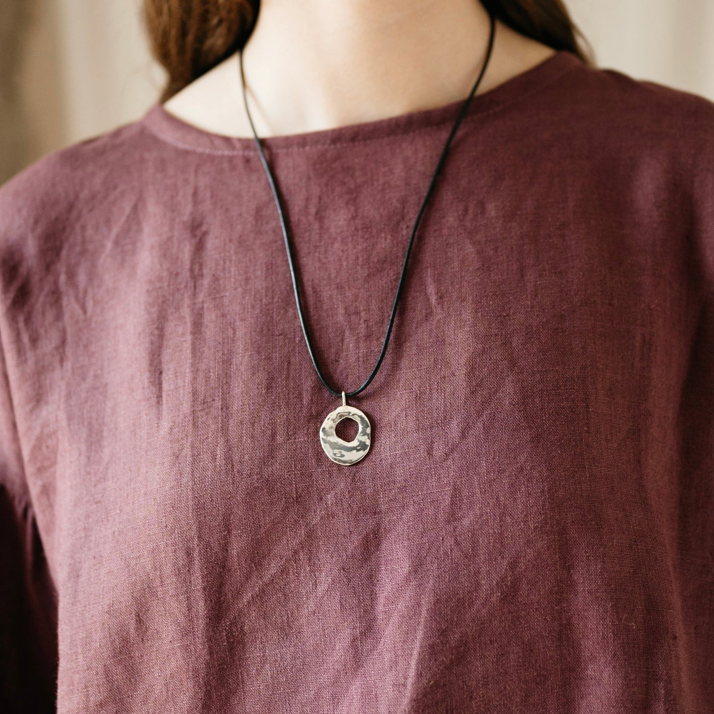 Threaded onto a leather cord or silver curb chain measuring 60cm in length.