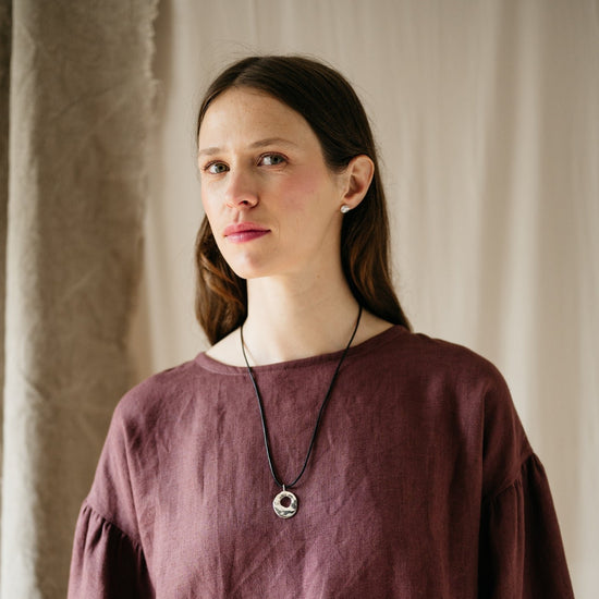 Inspired by her families summer of searching for Hag Stones on the local Norfolk beaches and eating oysters. This solid pendant was carved from jewellers wax before being cast in recycled Sterling Silver.