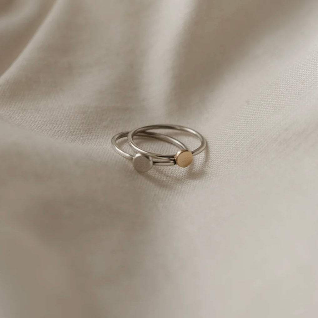 Simple stacking ring with the addition of a recycled metal pebble made from our off-cuts of silver. Add them to a stack or very cute on their own.