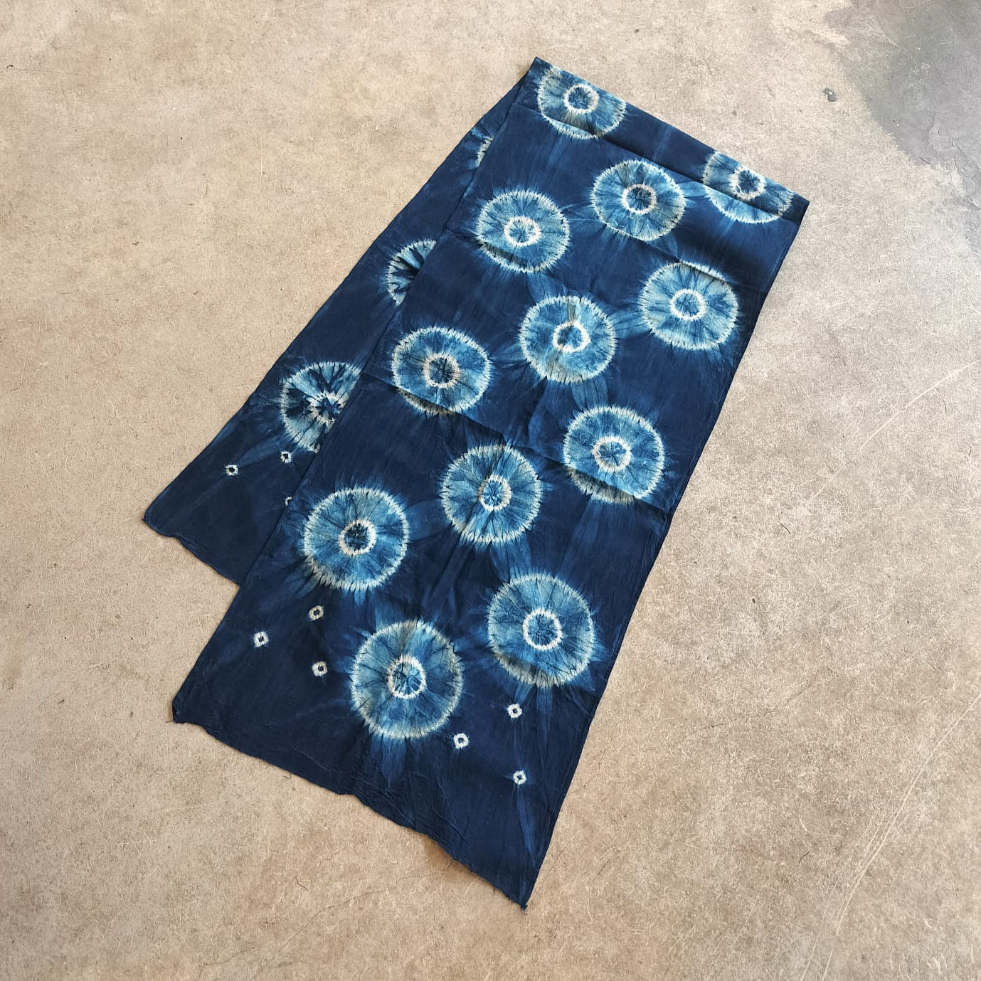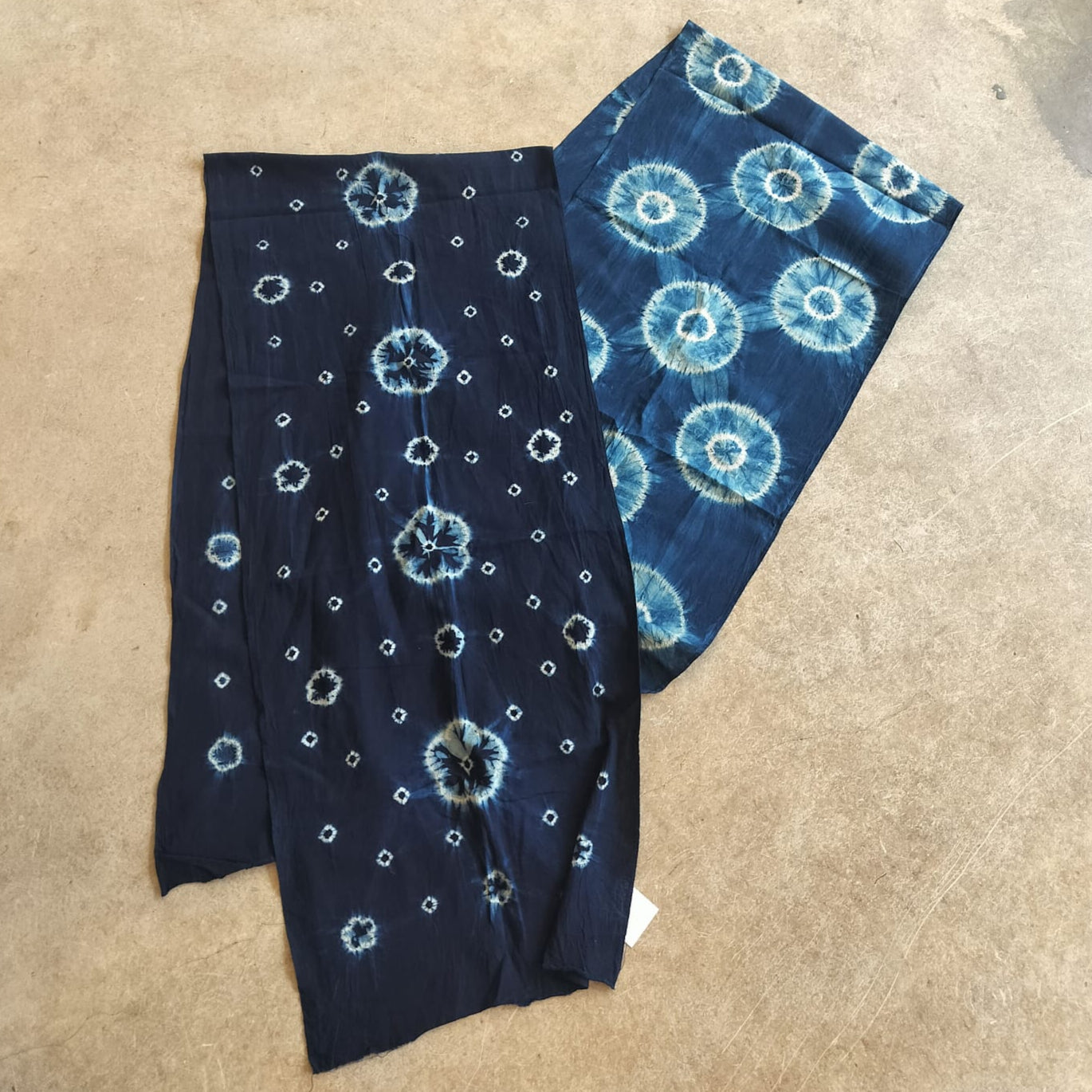 Lightweight scarves dyed in various patterns with indigo. Please note, each scarf will vary in appearance due to the handmade nature.