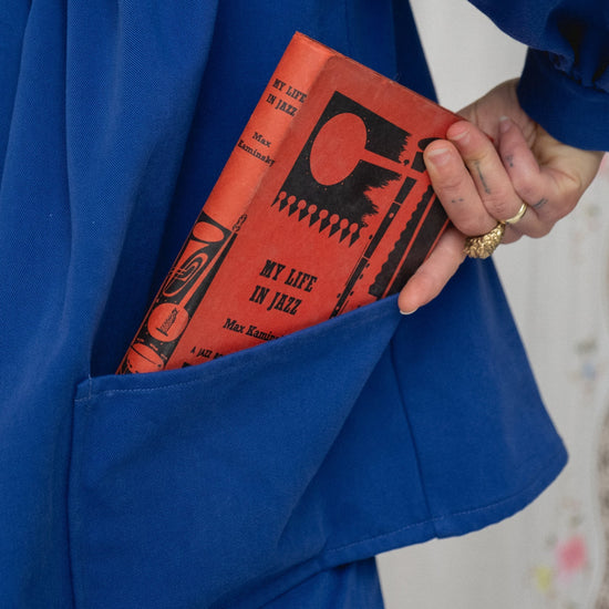 The Paloma smock can be worn as a top or a light jacket. Handmade from a navy medium weight 100% cotton twill.