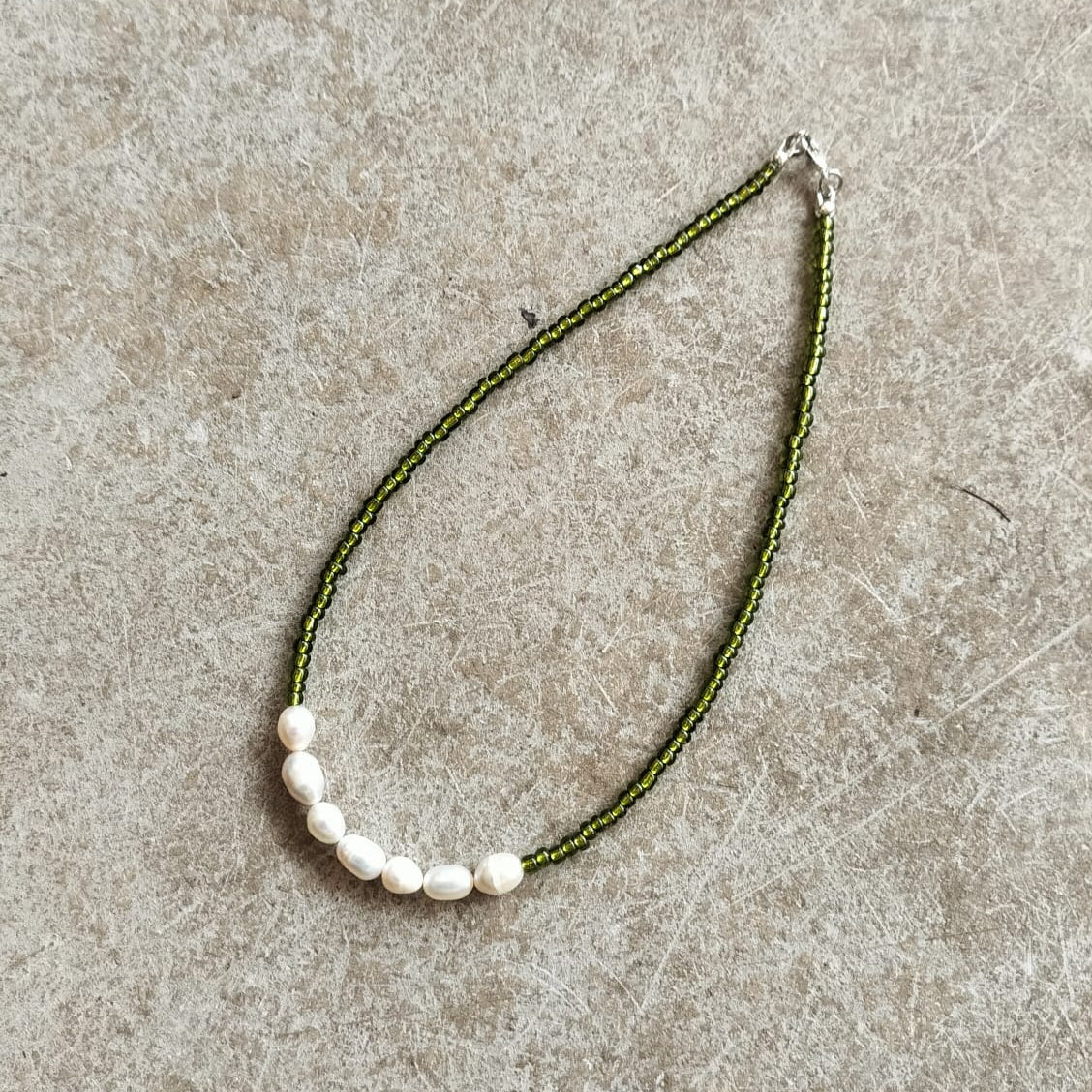 These beautiful beaded necklaces are perfect for adding a bit of colour to any outfit. Made from reclaimed pearls and glass seed beads with Silver toned fastenings.