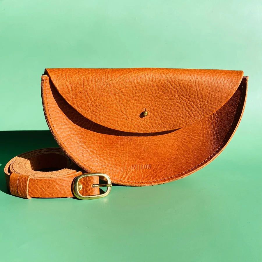 Willow Leather - Half Moon Mini Leather Bag In Textured Burnt Orange