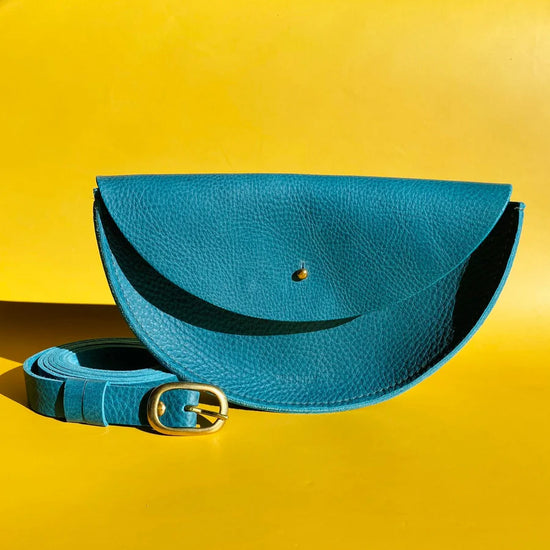 Willow Leather - Half Moon Mini Leather Bag In Textured Turquoise